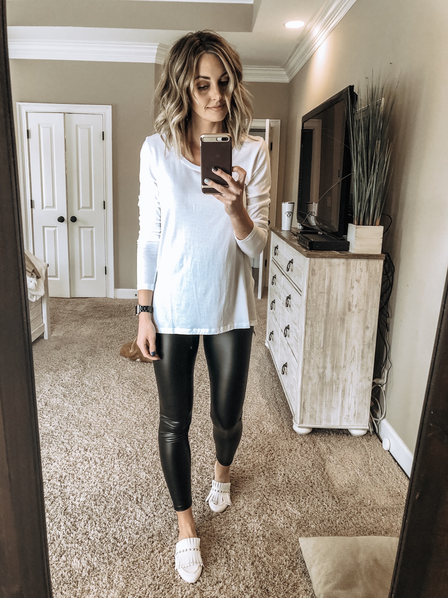 The first thing that comes to my mind is the FRIENDS episode where Ross is stuck in the bathroom with his leather pants… yep thats me in these pants. It was a true workout to get these bad boys off! As far as faux leather leggings go, these are definitely faux! Im not sure what was worst, the swooshing sound as I walk, or the thinness of the material.