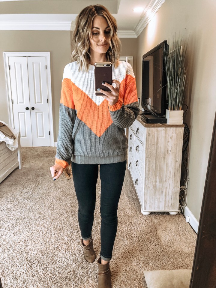 And last, but definitely not least this white, orange, and grey color blocked sweater. This is by far my favorite amazon find! Its spectacular! The quality is amazing, and the material is so soft. Plus its just so freaking cute! I can’t wait to wear this one out and about. And how cute will this sweater be on a cooler summer night with shorts and white shoes!